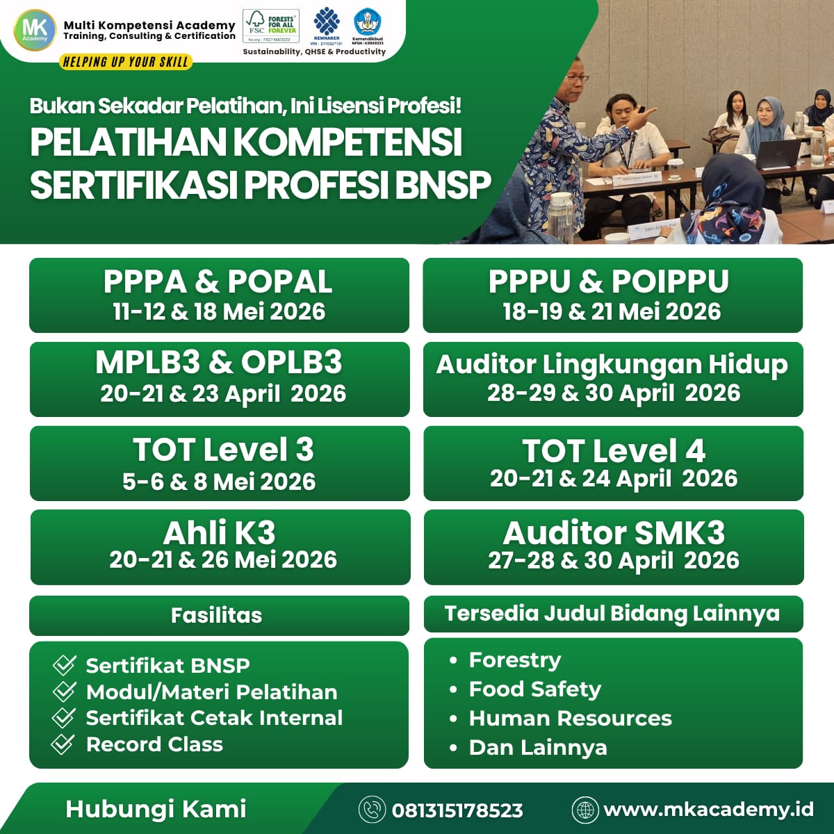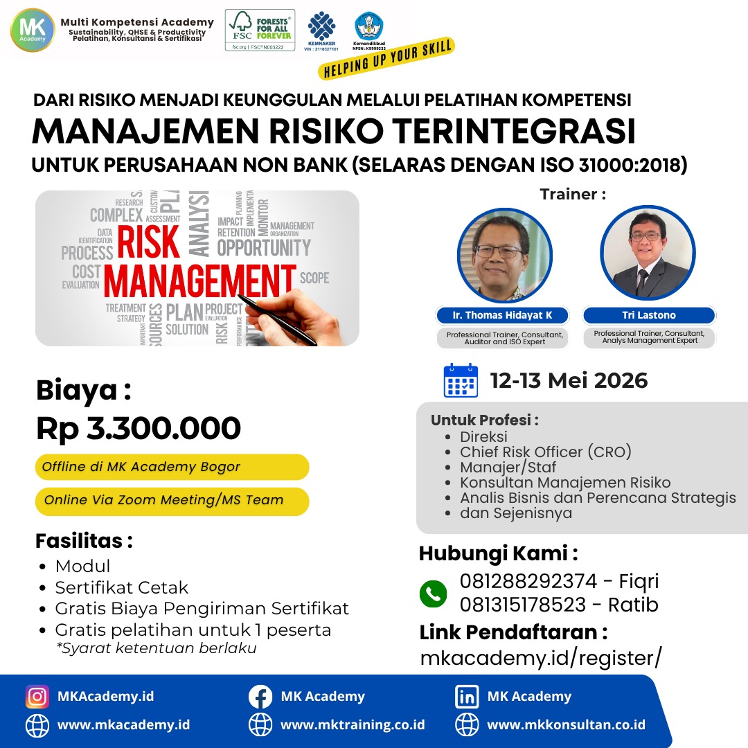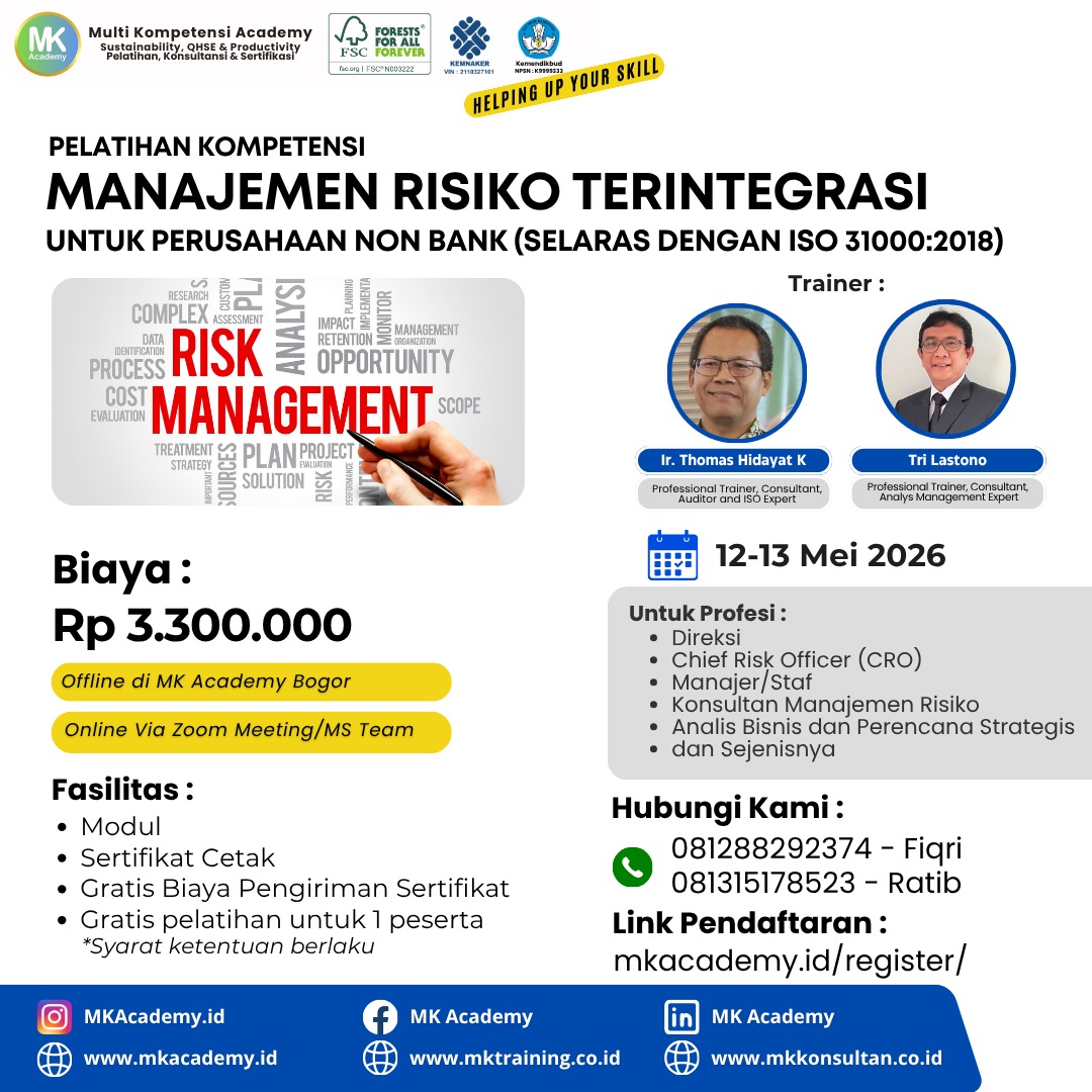 MK Academy adalah lembaga yang bergerak di bidang Pelatihan, Kursus, Konsultansi/ Pendampingan, dan Sertfikasi, sejak tahun 2008.