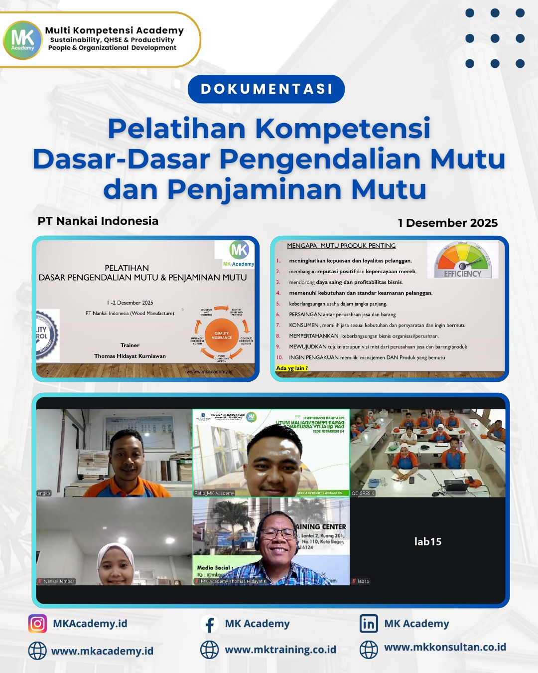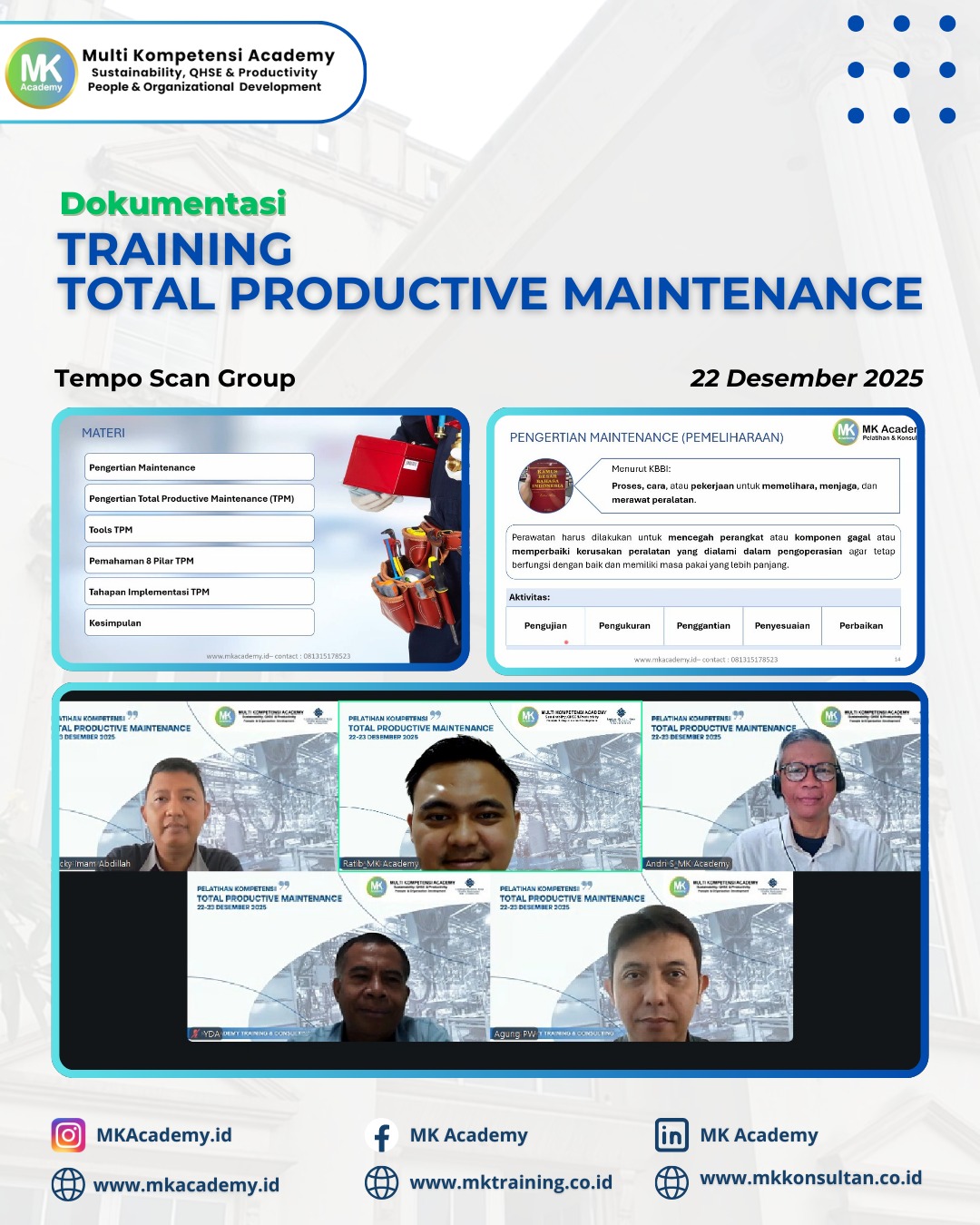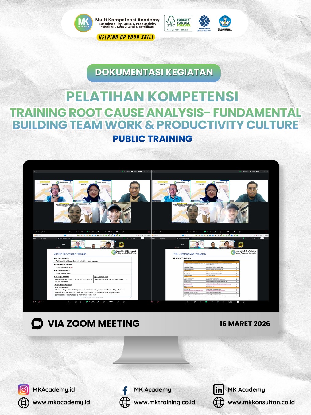 MK Academy adalah lembaga yang bergerak di bidang Pelatihan, Kursus, Konsultansi/ Pendampingan, dan Sertfikasi, sejak tahun 2008.